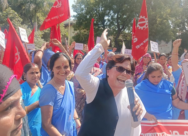 कोटा. हिन्द मजदूर सभा से संलग्न राजस्थान आंगनवाड़ी आशा सहयोगिनी वर्कर्स यूनियन द्वारा आशा सहयोगिनियों की जायज मांगों को बजट में शामिल करने हेतु विशाल रैली एवं धरने का आयोजन किया गया. रैली जिला कलेक्टर कार्यालय पर आम सभा मे परिवर्तित होने के बाद आम सभा में तब्दील हुई. आम सभा को हिन्द मजदूर सभा की राष्ट्रीय सचिव कॉम चम्पा वर्मा ने संबोधित करते हुए बताया कि आशा सहयोगिनी की समस्याओं का सरकार शीघ्र ही समाधान करें.