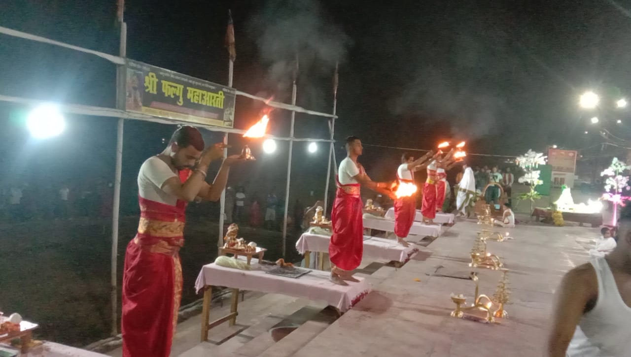 श्री नारायण विष्णुपाद कि कृपा से आज गयाज़ी प्रवास पर आए हुए श्री माधव वैष्णव संप्रदाय उत्तरादिमठाधीश श्री श्री 1008 सत्यात्मक तीर्थ ज़ी महाराज जी इस महाआरती क़े शाक्षी बन आशीर्वाद प्रदान किया.आज की इस महाआरती में फल्गु सेवा समिति के अध्यक्ष मुन्ना लाल पाठक धोकड़ी,सचिव विनोद लाल मेहरवर समेत समिति के सभी सदस्य मनी लाल बारीक़, फल्गु सेवा समिति के सदस्य गौतम गायब, द्वारिका बाबू बिट्ठल,कमल बारीक़,आशीष कटरियार, अजय कटरियार शशी हल, मुन्नू दुबे ,माधव धोकडी ,गोपी धोकडी , शम्भू गुर्दा , बैजू चौधरी , बाबू गुर्दा ,मुन्ना गुर्दा , जीतू गुर्दा .इसकी जानकारी मीडिया प्रभारी छोटू बारीक़ जी एवम गोकूल दुबे जी ने दी. इस फल्गु महाआरती के उपरांत भक्तों के बीच महाप्रसाद का भी वितरण किया गया.