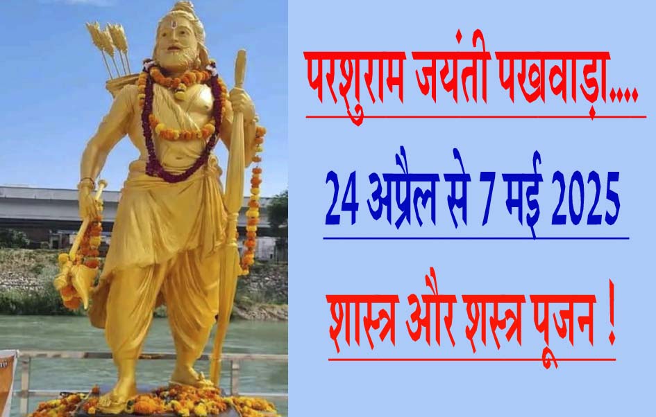 जयपुर (व्हाट्सएप- 8875863494). राजस्थान ब्राह्मण महासभा द्वारा भगवान परशुराम जयंती के अवसर पर प्रदेश भर में 25 अप्रैल से 7 मई 2025 तक संभाग एवं जिला मुख्यालय पर भगवान परशुराम जयंती पखवाड़ा मनाया जा रहा है.