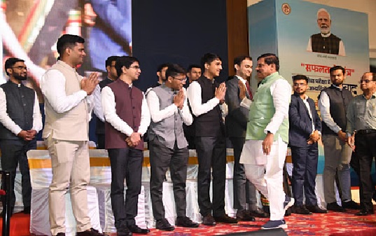 पलपल संवाददाता, भोपाल. एमपी की राजधानी भोपाल स्थित कुशाभाऊ ठाकरे कन्वेंशन सेंटर (मिंटो हॉल) में यूनियन पब्लिक सर्विस कमीशन (UPSC) सिविल सर्विसेज परीक्षा 2024 में उत्तीर्ण मध्यप्रदेश के 60 प्रतिभागियों को सम्मानित किया गया. कुल 60 प्रतिभागियों में से 15 युवतियां हैं. इस मौके पर CM डॉ. मोहन यादव ने कहा कि हमारा देश महान है यहां एक चाय वाला प्रधानमंत्री है और गाय वाला आपके सामने बोल रहा है. इस मौके पर सीएम के अलावा उच्च शिक्षा मंत्री इंदरसिंह परमार सहित जनप्रतिनिधि व अधिकारी सहित अन्य गणमान्य लोग उपस्थित रहे.