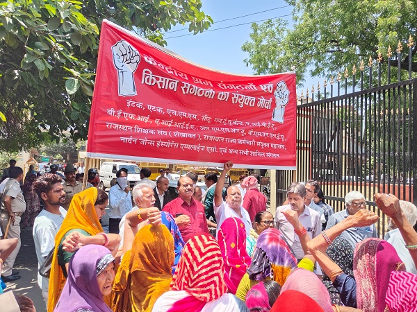 न्यूनतम पेंशन राशि रु 9000/- प्रतिमाह तय की जाए. आँगनबाड़ी, आशा, मिड डे मील तथा आशा किरण आदि स्कीम वर्कर को श्रमिक का दर्जा प्रदान किया जाए. मनरेगा मे न्यूनतम मजदूरी मे वृद्धि के साथ-साथ, वर्ष मे कम से कम 200 दिन के रोजगार की गारंटी हो, सहित विभिन्न बकाया मांगों का शीघ्र निराकरण किया जाएं. केंद्रीय श्रम संगठनों के संयुक्त मोर्चा द्वारा मंगलवार 20 मई को जिलाधीश कार्यालय कोटा पर नारेबाजी की गई तथा प्रधानमंत्री महोदय के नाम जिलाधीश महोदय को ज्ञापन सौंपा गया.