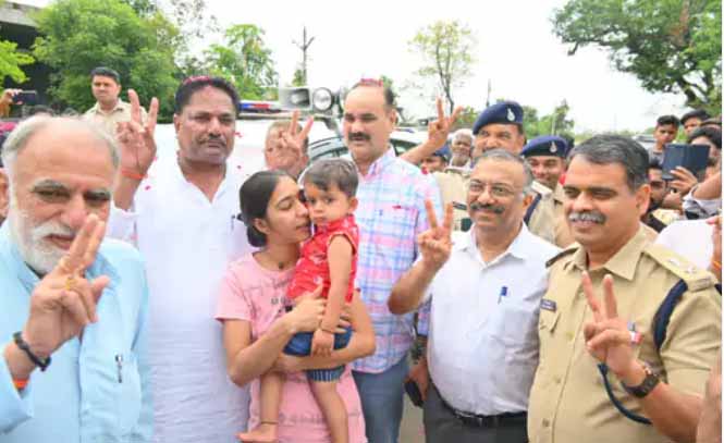 आईजी मिथिलेश कुमार शुक्ला, डीआईजी प्रशांत खरे और एसपी के साथ पुलिस बच्चे को लेकर जैसे ही घर पर पहुंची तो ढोल-नगाड़े, आतिशबाजी और फूलों की वर्षा के साथ स्वागत किया गया. मां ने बच्चे को गोद में ले लिया और उसे दुलारने लगी.