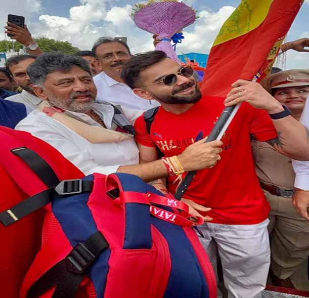 शिवकुमार ने प्रत्येक खिलाड़ी को गुलदस्ते भेंट किए. उपमुख्यमंत्री शिवकुमार ने क्रिकेटर विराट कोहली का विशेष रूप से स्वागत किया और उन्हें आरसीबी टीम का झंडा और कन्नड़ झंडा दोनों भेंट किए. विराट कोहली ने खुशी-खुशी झंडे प्राप्त किए और उपमुख्यमंत्री के साथ तस्वीरें खिंचवाईं. शिवकुमार को एयरपोर्ट जाते समय अपनी कार से आरसीबी का झंडा लहराते भी देखा गया.