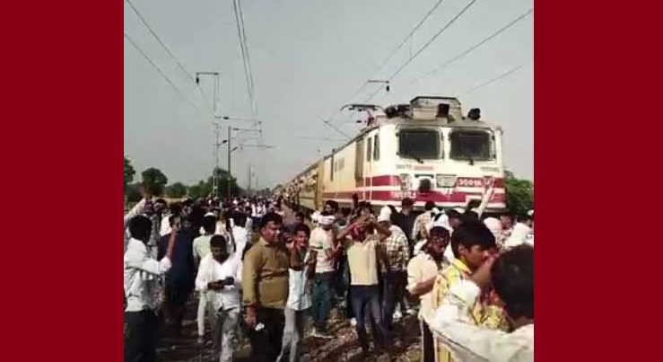भरतपुर. राजस्थान में गुर्जर महापंचायत खत्म होने के बाद समाज के लोगों ने भरतपुर के पीलूपुरा में ट्रेन रोक दी. भीड़ पटरियों पर पहुंची और कोटा-मथुरा पैसेंजर को रोक दिया. दिल्ली-मुंबई रेलवे ट्रैक को जाम कर दिया.