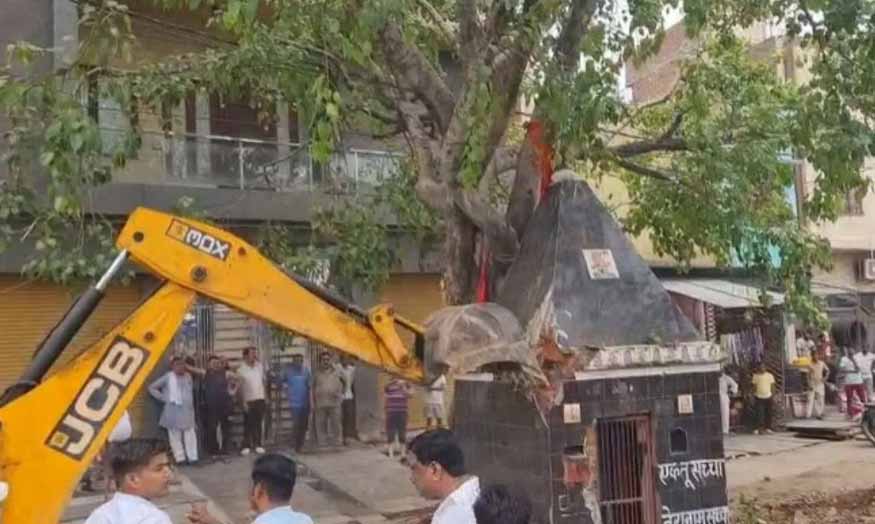 संभल. उत्तर प्रदेश के संभल में प्रशासन ने बुलडोजर कार्रवाई की है. इस कार्रवाई में एक मंदिर को हटाया गया है. प्रशासन ने स्थाई और अस्थाई करीब बीस अवैध कब्जों को भी हटा कर नेशनल हाईवे को साफ कराया है. बुलडोजर की कार्रवाई संभल के बहजोई में इस्लामनगर चौराहा पर हुई है जहां नेशनल हाईवे की जमीन पर बने मंदिर को बुलडोजर ने गिराया है. वहीं देव प्रतिमाओं को दूसरे स्थान पर स्थापित कर दिया गया.