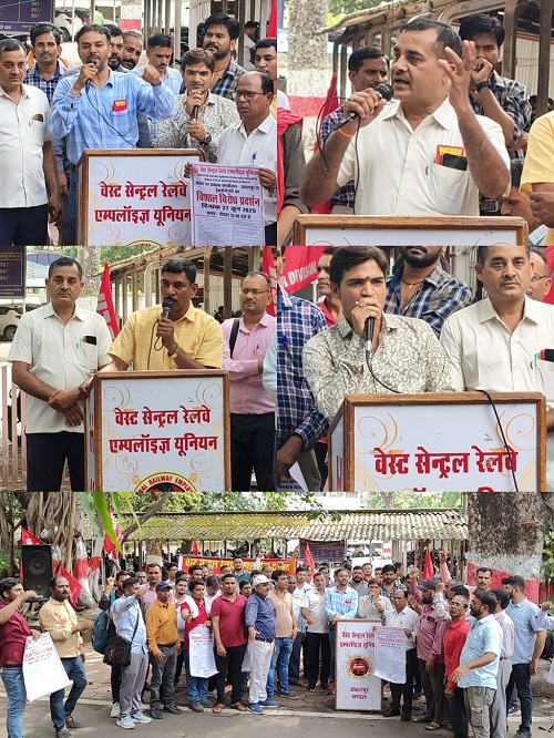 जबलपुर. पश्चिम मध्य रेलवे के जबलपुर मंडल के सैकड़ो ट्रैकमैन ने आज डीआरएम कार्यालय परिसर में WCREU के बैनर तले भोजनावकाश में ट्रेकमेन्टरों की समस्याओं के हल ना होने के विरोध में विशाल विरोध प्रदर्शन किया.