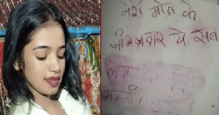 पलपल संवाददाता, भोपाल. एमपी के भोपाल स्थित बल्लभ नगर क्षेत्र में आज सुबह 5 बजे के लजगभग नव-विवाहिताने फांसी लगाकर आत्महत्या कर ली. आत्महत्या से पहले युवती ने लिपस्टिक से दीवार पर सुसाइड नोट लिखा. इसमें तीन लोगों को अपनी मौत का जिम्मेदार बताया. आखिरी में लिखा मां मुझे बचा लो.