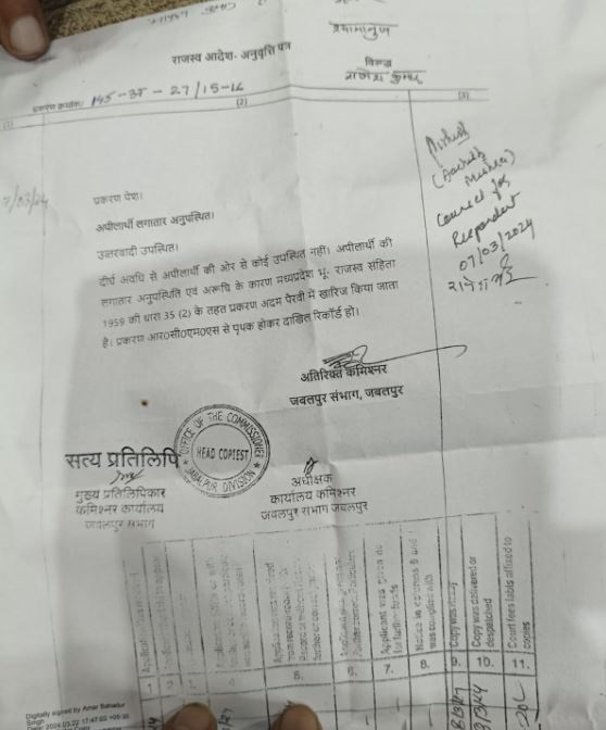 पलपल संवाददाता, जबलपुर। मध्यप्रदेश के प्रशासनिक तंत्र की सुस्ती का शर्मनाक उदाहरण सामने आया है। जबलपुर संभागीय कमिश्नर कार्यालय ने पाटन तहसील से जुड़े एक ज़मीन विवाद की अपील 07 मार्च 2024 को खारिज कर दी थी लेकिन 16 महीने बीत जाने के बाद भी फाइल पाटन ैक्ड कार्यालय तक नहीं पहुंची हैए जो महज़ 30 किलोमीटर की दूरी पर स्थित है।