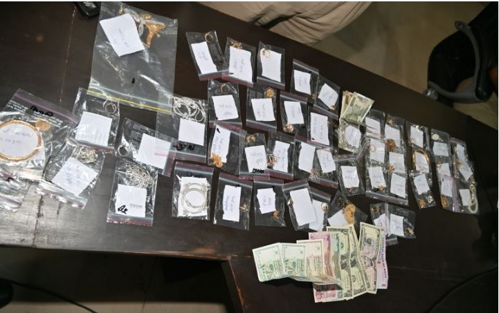आरोपियों की निशादेही पर चुराया हुआ डायमण्ड का 1 हार, 1 पैंडिल, सोने के 2 हार, 4 कंगन, 13 अंगूठी, 4 लाकेट, 11 टाप्स, 3 सिक्के, 5 लौंग, 1 मोतीहार, चांदी की 2 जोड पायल, 3 जोड बिछिया, कंगन, चूडी अंगूठी आदि कीमती लगभग 25 लाख रूपये के चुराये हुये रूपयों में से शेष बचे नगद 4000 रूपये एवं फॅारेन करेन्सी अमेरिकन डॉलर, रियाल, दिरहम के 10 नोट, 2 सूटकेस, 2 बैग तथा घटना में प्रयुक्त एक्सिस क्रमांक एमपी 20 जेड डब्ल्यू 1242 जप्त की है.