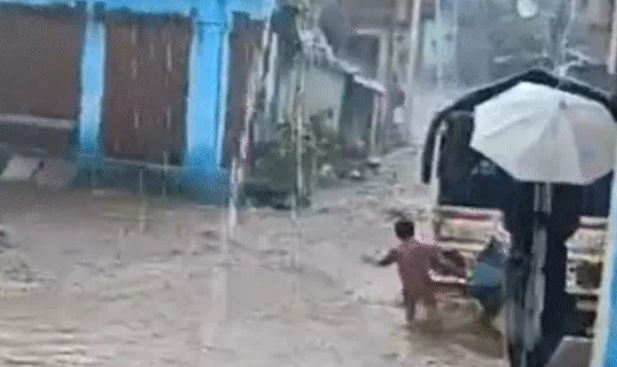 वैन का इंतजार कर रहे बच्चे पानी में बहे-