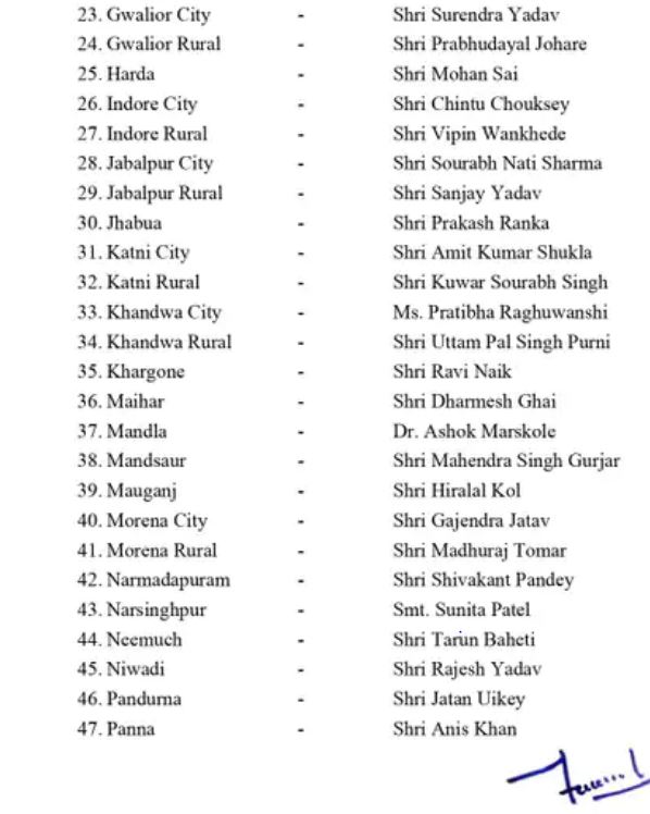 इन पूर्व विधायकों को जिला अध्यक्ष बनाया