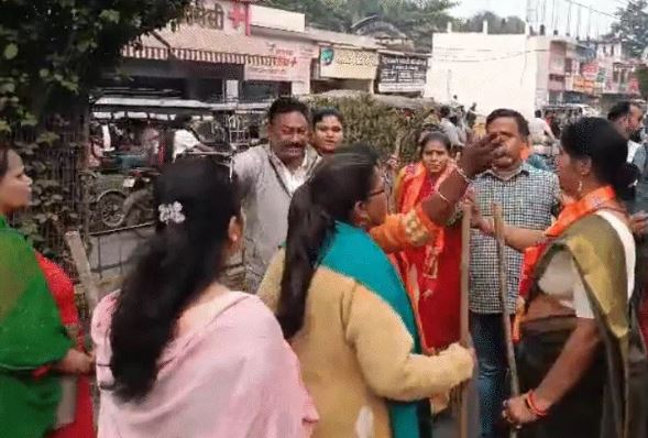 एसपी ऑफिस से निकलने के बाद हिंदू संगठनों के कार्यकर्ताओं को सूचना मिली कि एससी-एसटी व ओबसी संगठन के लोग ओमती थाने पर मौजूद हैं. इसके बाद कुछ लोग चेहरा ढककर, हाथों में लाठियां लेकर महिलाओं सहित ओमती थाने पहुंच गए. वहां दोनों गुट आमने-सामने आ गए. पुलिस ने उन्हें रोकने की कोशिश की लेकिन वे नहीं माने. पुलिस के सामने ही हिंदू संगठन की कुछ महिला कार्यकर्ताओं ने लाठिया भांजी. हालांकि पुलिस ने समय रहते स्थिति को नियंत्रण में कर लिया और हंगामा कर रहे लोगों को दूर किया.